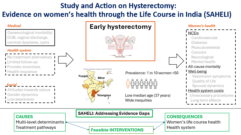 SAHELI: Study and Action on Hysterectomy: Evidence on women’s health through the Life Course in India is a five-year, multi-disciplinary study to examine the causes and consequences of hysterectomy and identify feasible interventions to improve women’s health.